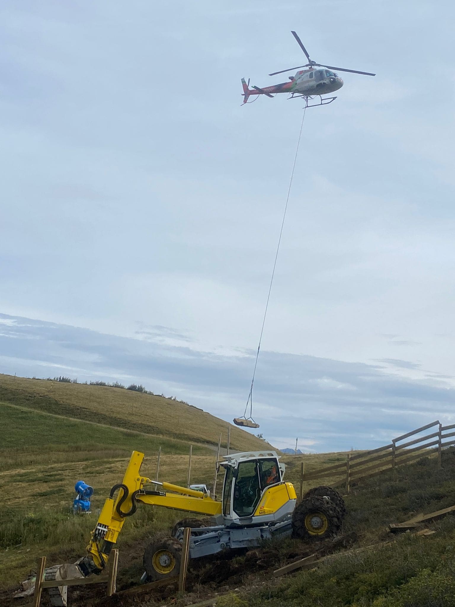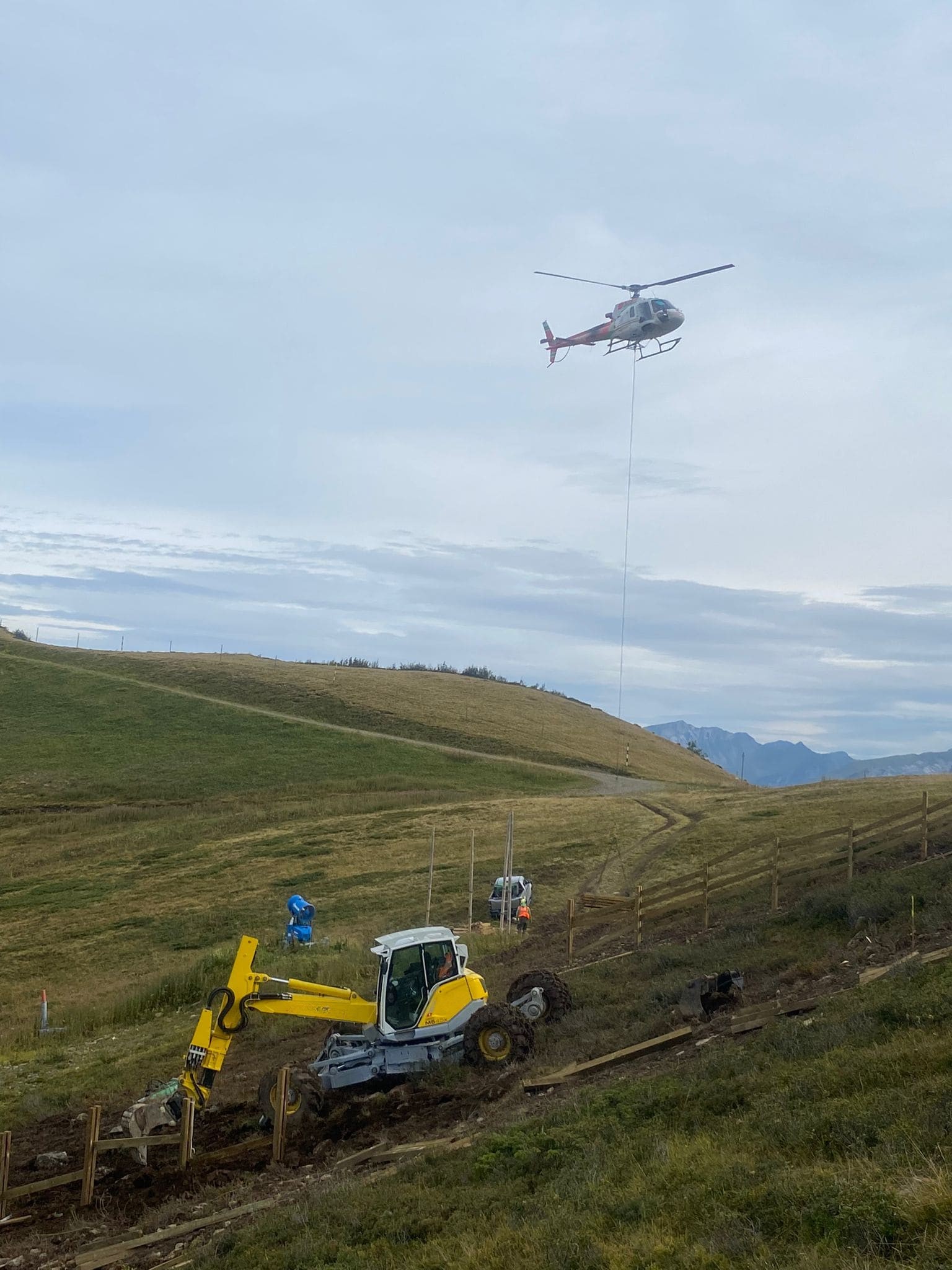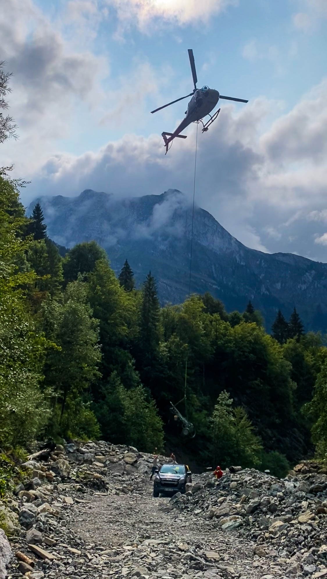 Mise en place de matériel lourd ou spécifique par hélicoptère, dans des zones inaccessibles.