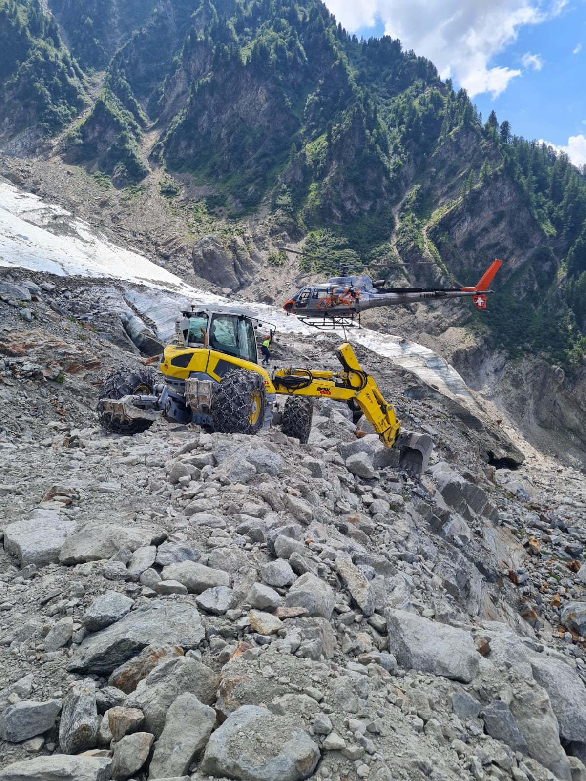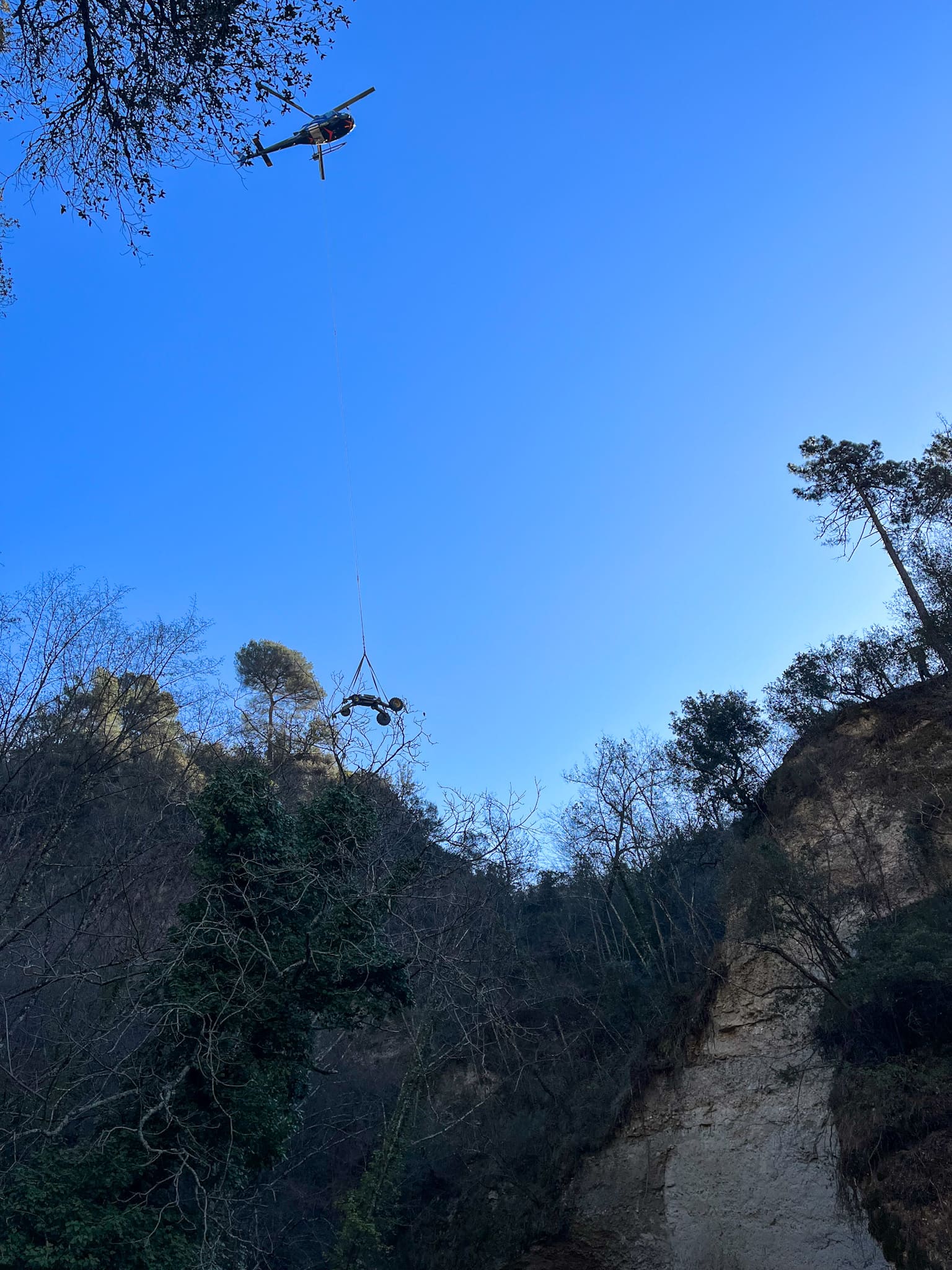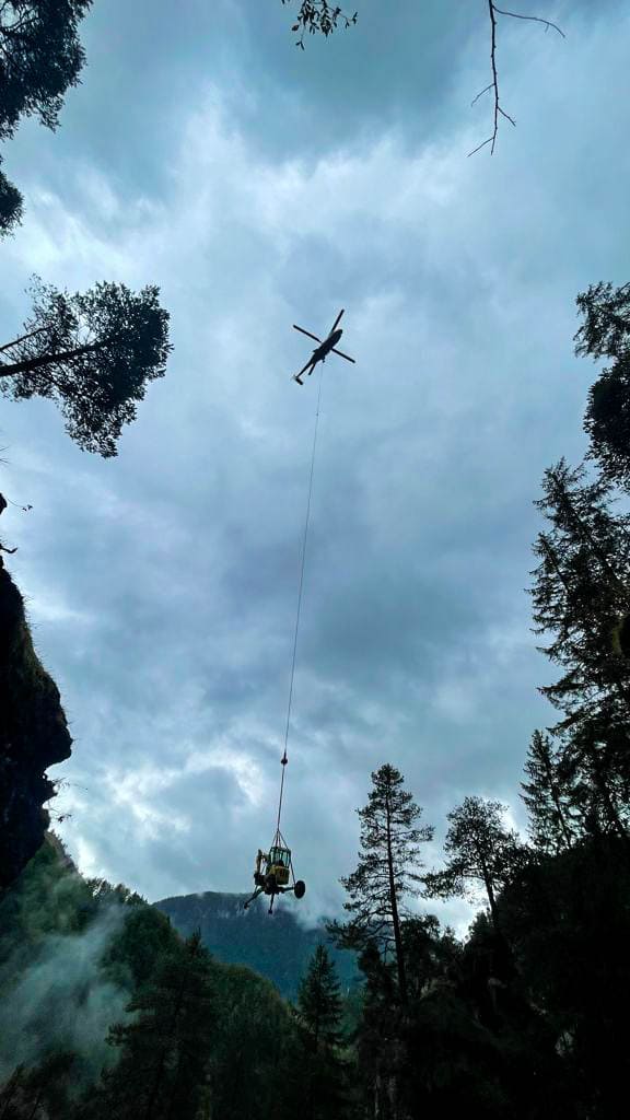 Mise en place de matériel lourd ou spécifique par hélicoptère, dans des zones inaccessibles.